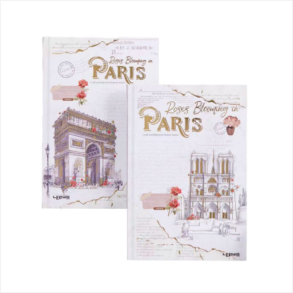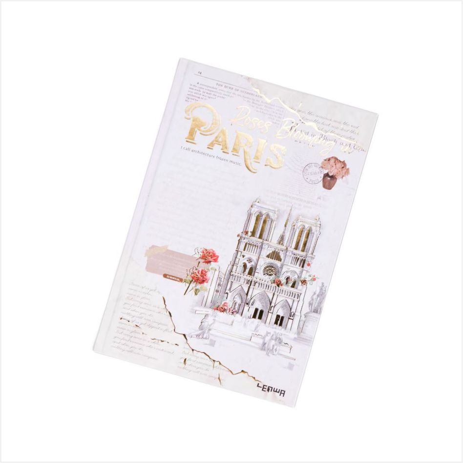 La copertina presenta edifici iconici come la Cattedrale di Notre Dame e l'Arc de Triomphe, con rose ed elementi di timbri vintage, trasudando una forte atmosfera artistica. La cornice di pagina interna adotta la tecnologia placcata in oro, aggiungendo un senso di lusso. Il design della linea orizzontale è adatto alla scrittura quotidiana e la carta a due colori marrone beige assicura che la scrittura sia liscia e inchiostro-che si tratti di un record casual o di un diario, ogni pagina è piena di atmosfera.