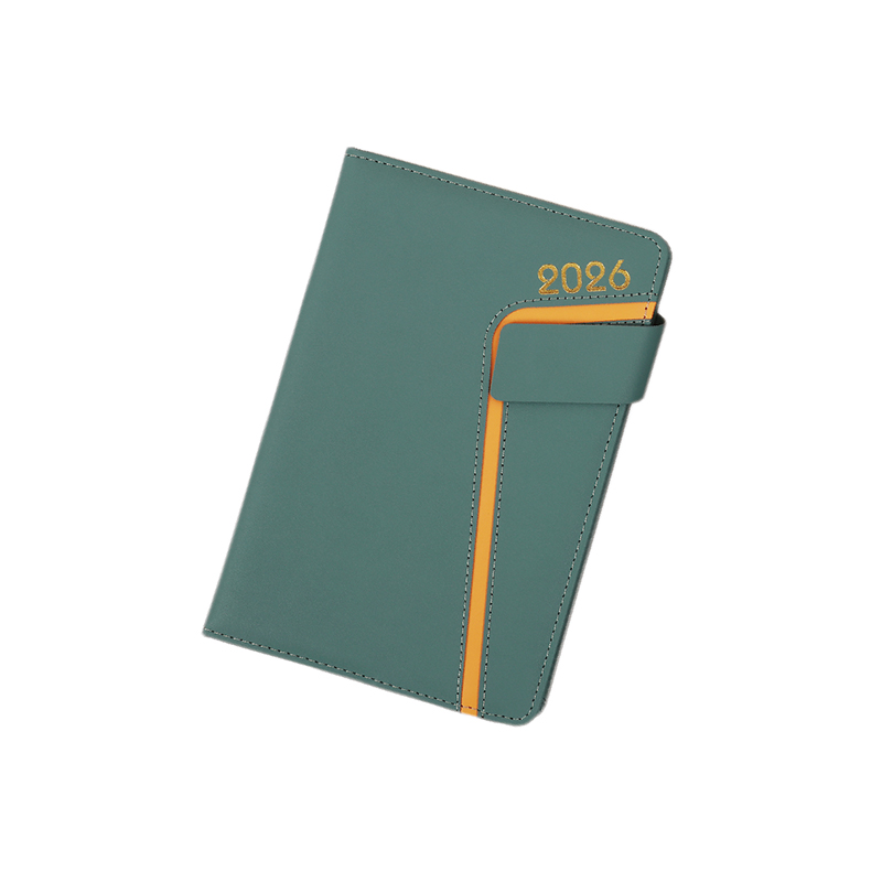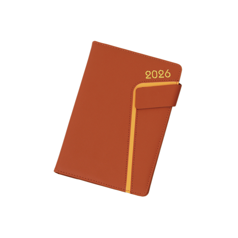 Questo libro dell'agenda tedesca ha una delicata copertina in pelle di imitazione PU, un logo 2026 stampato in oro e una linea arancione brillante sul lato. È abbinato a una fibbia magnetica obliqua quadrata. L'intera copertina è avvolta da una tavola grigia foderata di spugna, che è morbida e confortevole al tatto.